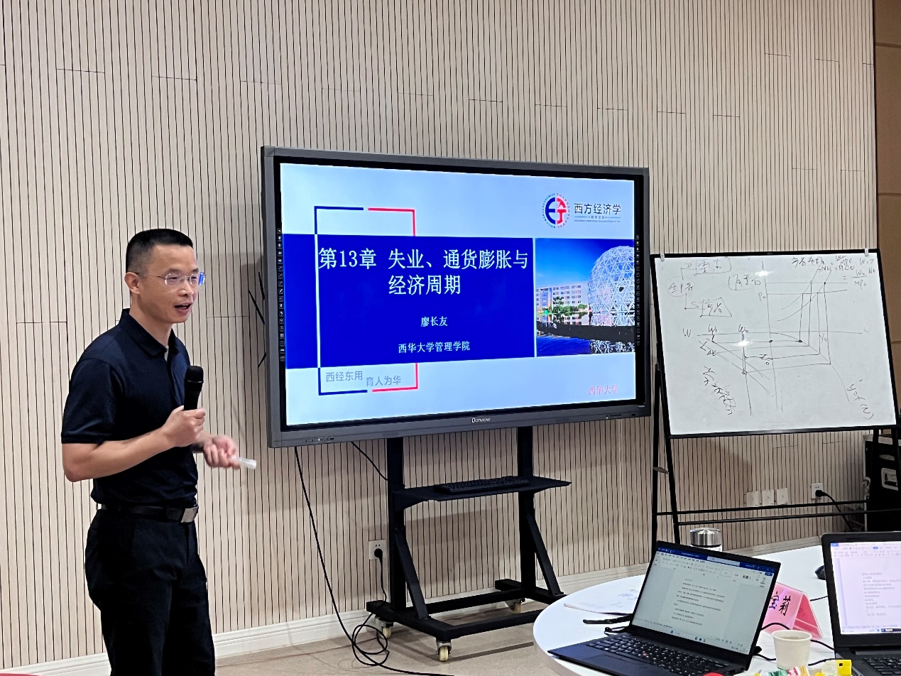 为进一步提升课程建设的质量,实现跨区域、跨学校“共建共享虚拟教研室”,促进成渝地区双城经济圈高等学校经济学课程教师之间的交流,由重庆财经学院市级经济学课程群虚拟教研室和西华大学西方经济学教学团队主办,388vip太阳集团与重庆财经学院经济学院承办的2023年暑期《宏观经济学》课程集体备课会于7月25日致28日在重庆工商大学举行。备课会同时开通了线上和线下两种渠道,来自全国14个省、24所本科高校的79位教师参加了备课会。