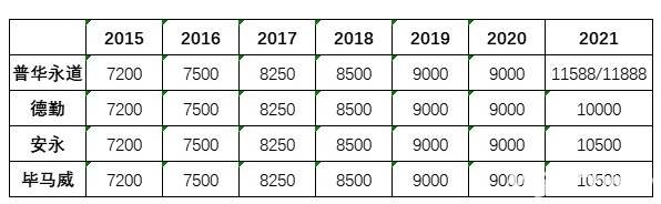 根据BOSS直聘研究院发布的《2021应届生就业趋势报告》显示,2021年应届生校招平均招聘薪资为6112元。而四大会计师事务所的工资,新入职A1薪酬在2015年已经达到了72002021年已经全部上涨到了10000+。普华永道的薪资更是高了一筹,新进公司的审计、税务、风控起薪11588,咨询起薪11888,是同期应届毕业生的将近一倍。