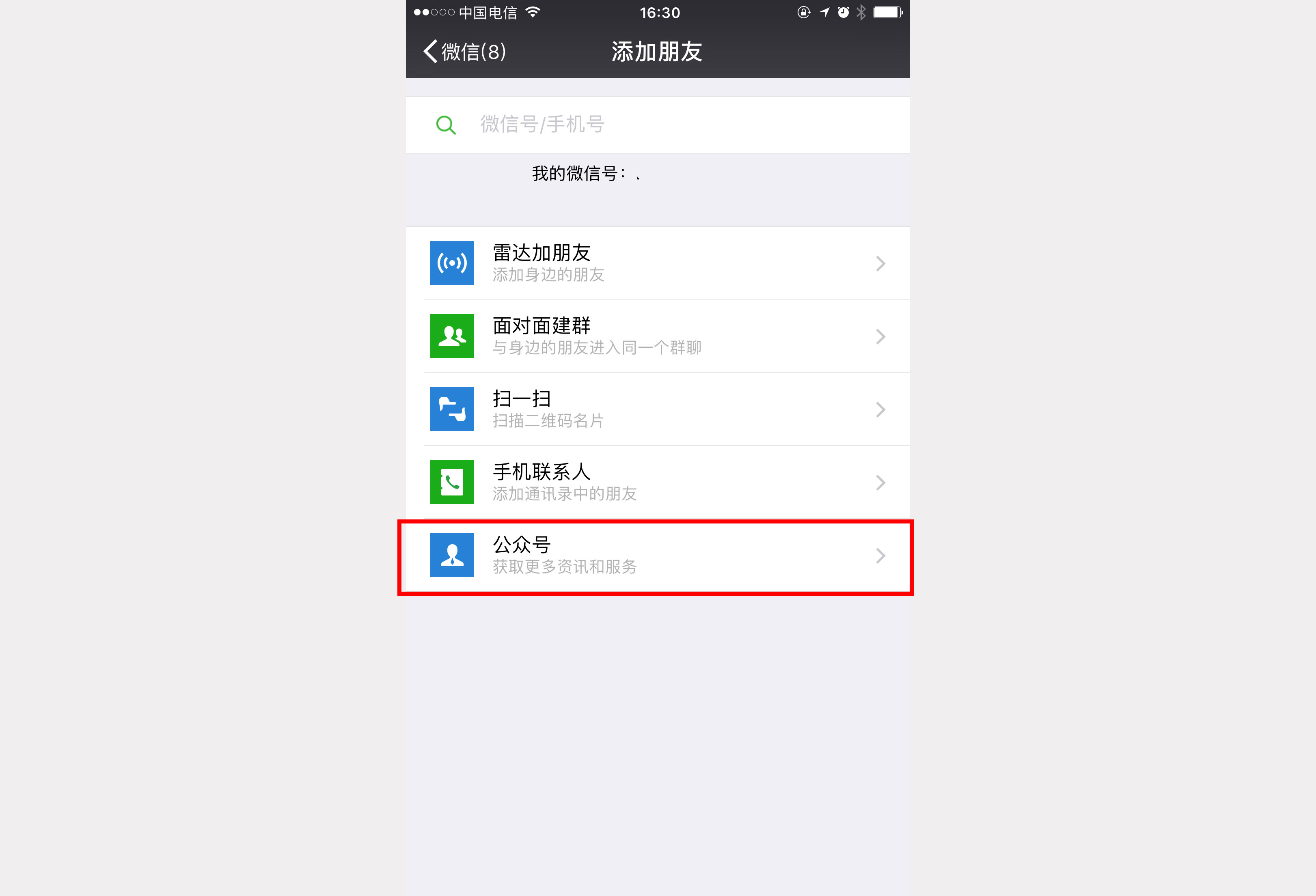1.2、 点击“公众号”进入公众号搜索界面