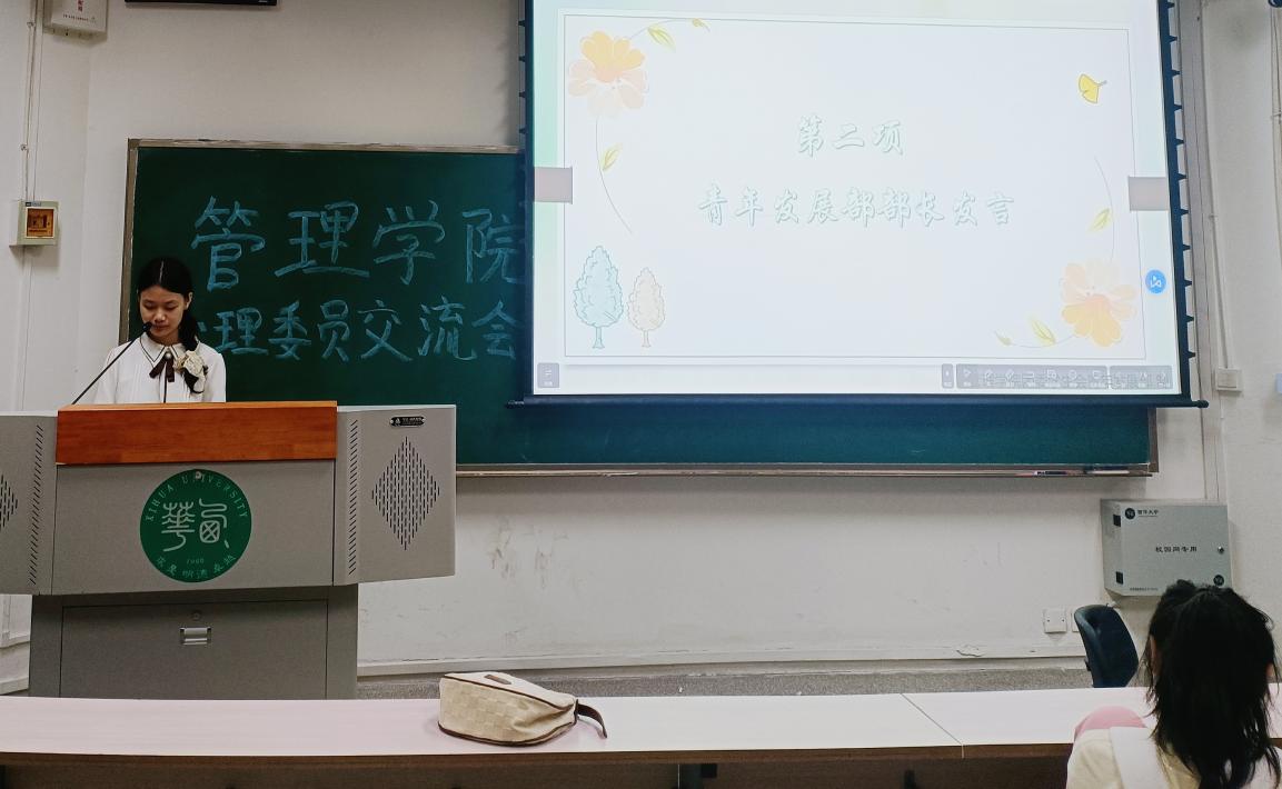 会议在《光荣啊,中国共青团》的歌声中拉开序幕。青年发展部向晨同学针对大二和大三学生出现的主要心理问题进行了总结,各年级心理委员也上台分享了自己班级主要出现的心理问题和解决方案,为推进班级心理建设工作贡献自己力量。会议期间, 青年发展部关开心上同学台讲述了本学期的心理工作规划,为本学期各班级心理工作的展开指明了方向。