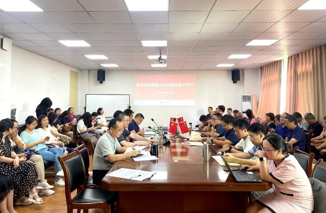 9月21日下午,管理学院在3E-402集中开展教职工政治理论学习,学院全体教职工参会,会议由学院党委书记肖东华主持。
