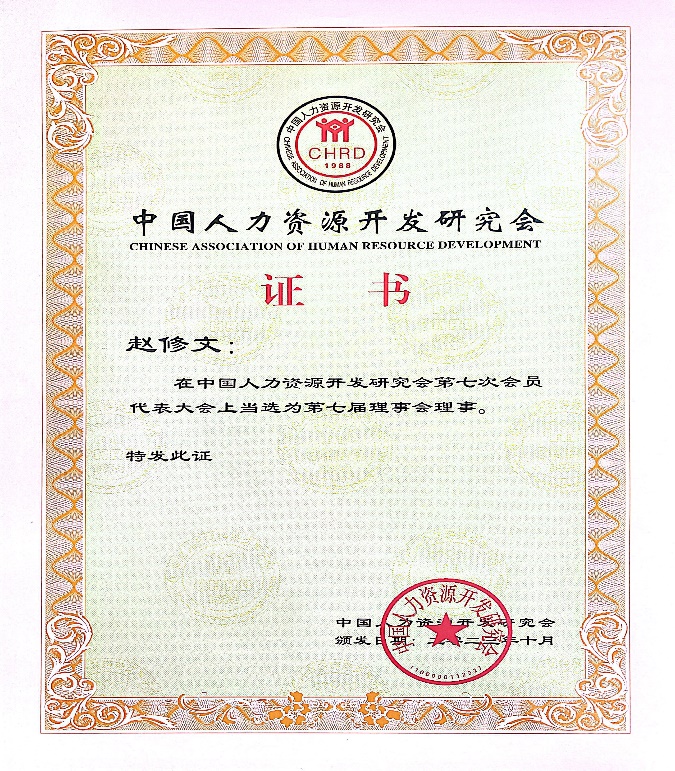 同时,388vip太阳集团当选为中国人力资源开发研究会第七届理事会理事单位,由赵修文院长领取奖章。