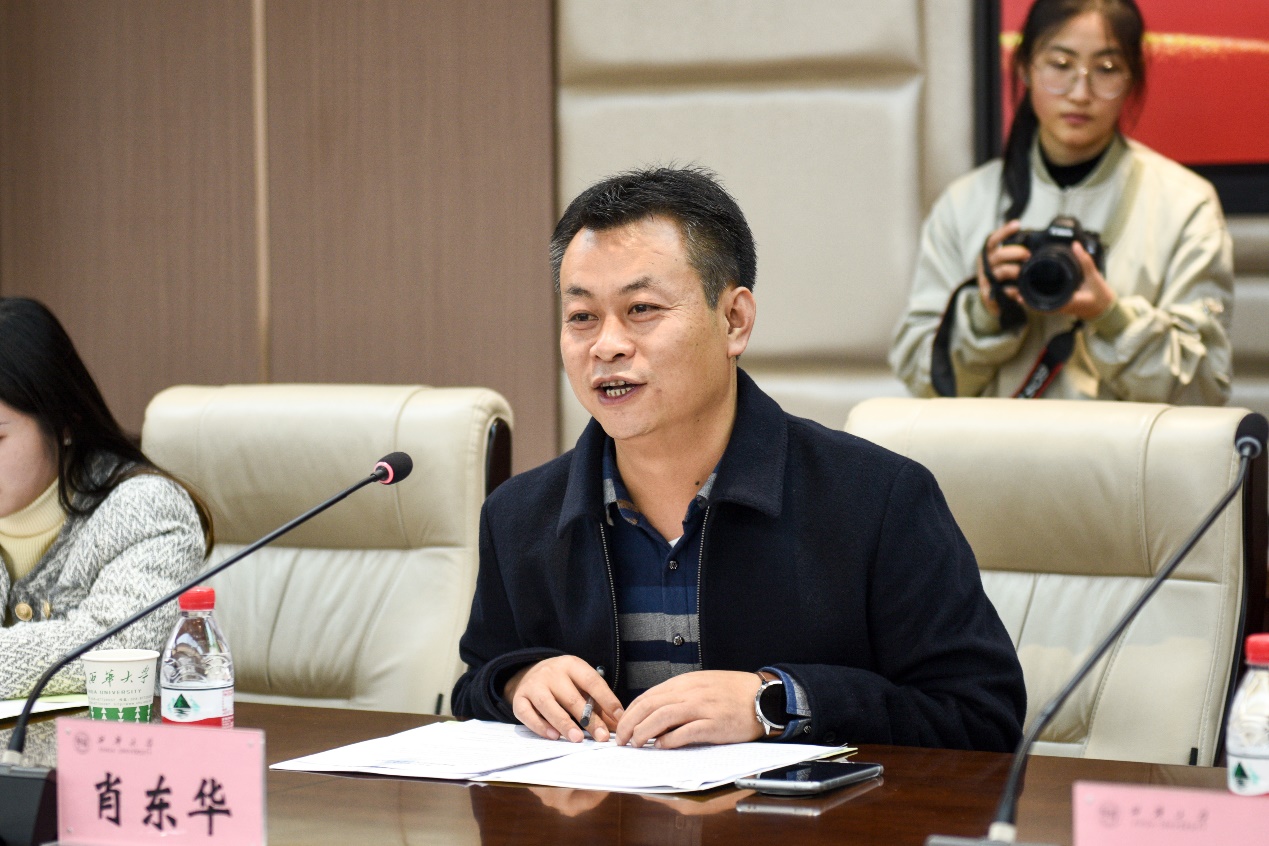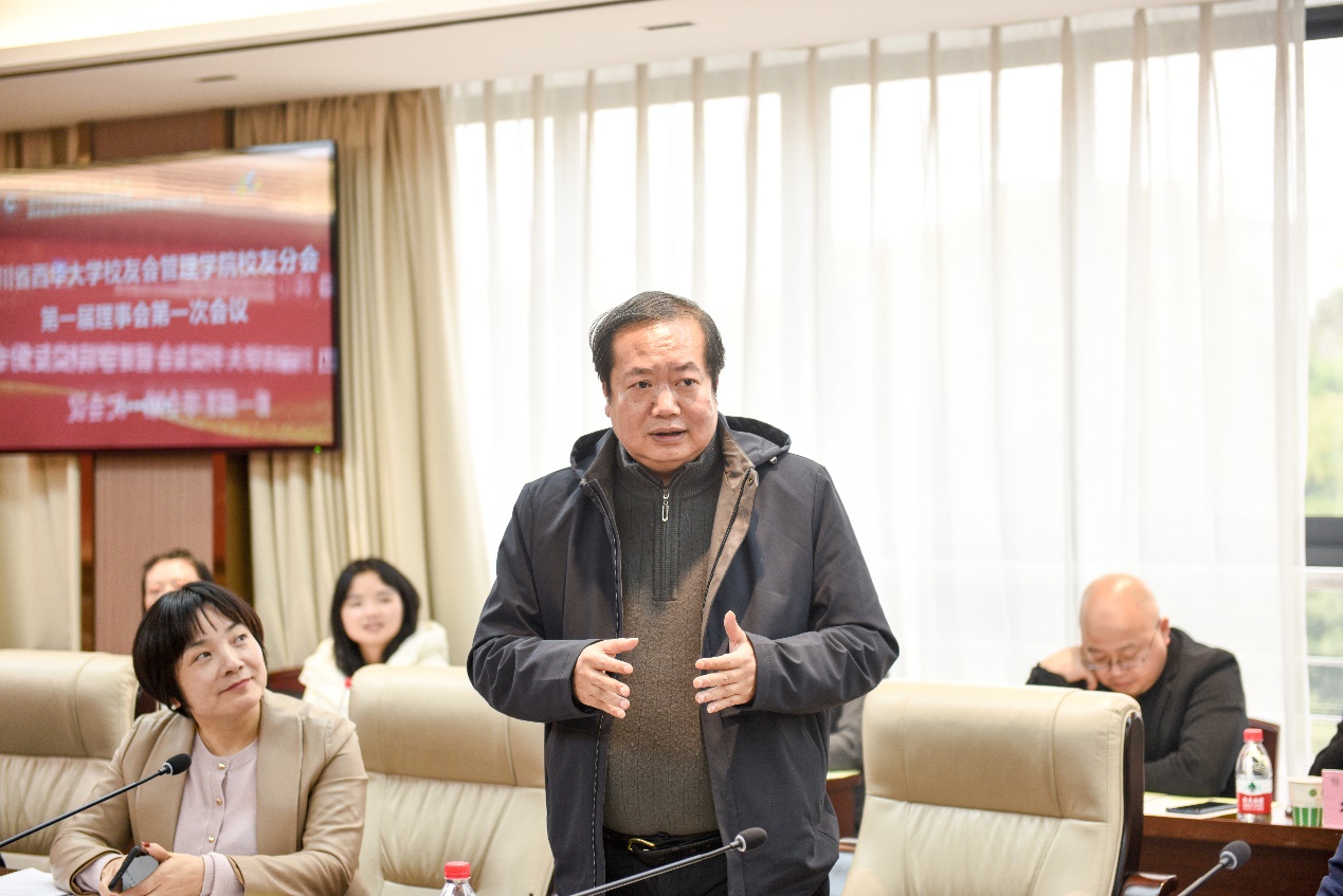 会议伊始,肖东华表达了对各位校友重聚母校的欢迎,并向各位校友介绍了关于四川省西华大学校友会管理学院校友分会的成立背景和相关事宜。他表示,学院始终高度重视校友工作,为进一步加强校友文化建设,更大范围凝聚和服务校友,学院于40周年院庆之际,启动此次校友分会的成立工作。这既是学院发展的需要、校友情感联络的需要,更是学院服务校友、发动校友的需要。