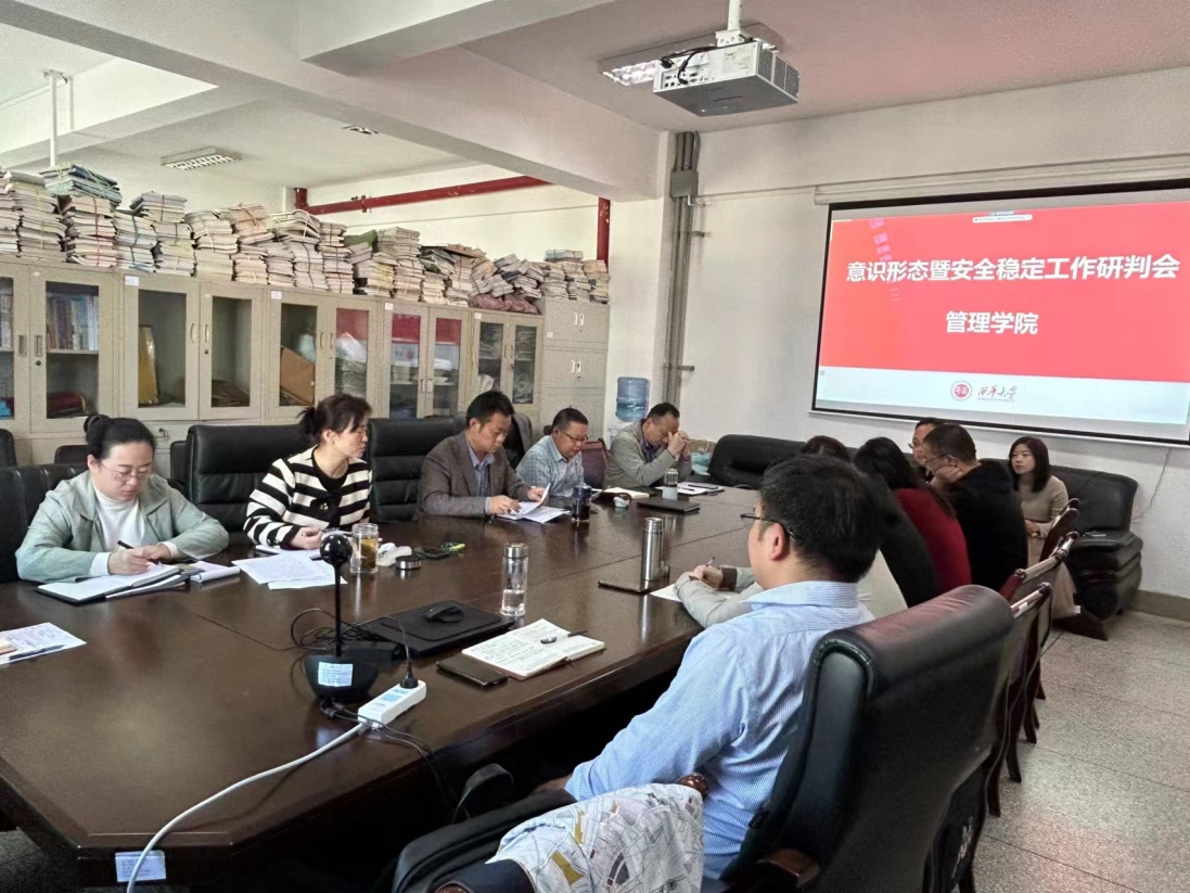 为了全面落实意识形态工作责任制,分析研判意识形态领域可能出现的苗头性、倾向性问题,11月9 日,管理学院在3E-401召开了意识形态暨安全稳定工作研判会,会议由党委书记肖东华主持,班子成员、党支部书记、系室主任及全体辅导员参会。