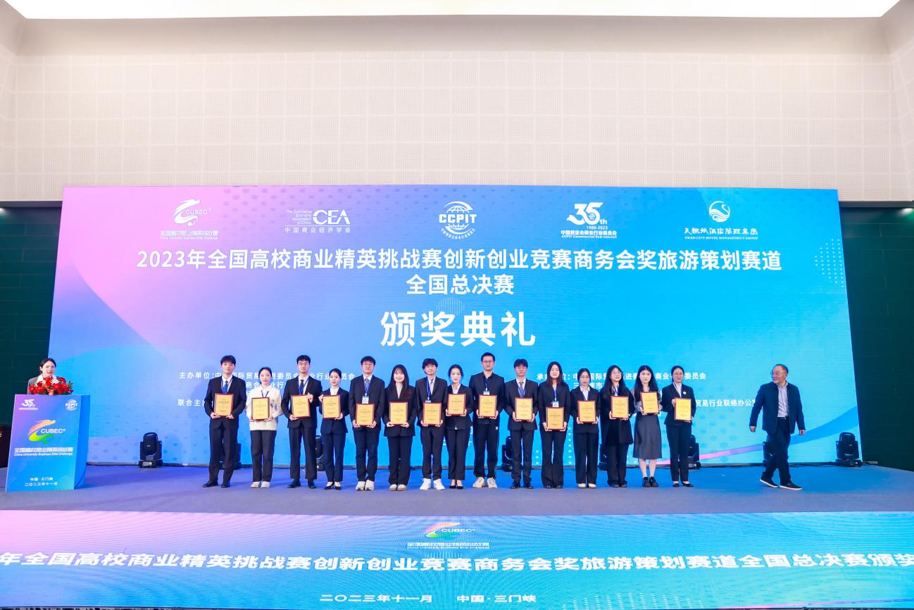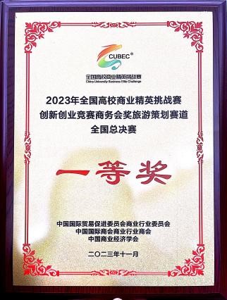 全国高校商业精英挑战赛信息化创新创业竞赛由全球华人营销联盟主办,中国国际贸易促进委员会商业行业委员会和新加坡营销协会共同协办,面向全国高等院校本科生的商业创意大赛。旅游策划赛道作为其中一个赛道,旨在考察学生对旅游市场的理解和对旅游策划的创新思维。我院学子经过长达3月的努力,经过激烈的初赛和决赛的比拼,最终在120支总决赛队伍中脱颖而出。本次获奖是我院在该项赛事该赛道中首次获得全国一等奖,对我院学子未来竞赛之路具有重要意义。