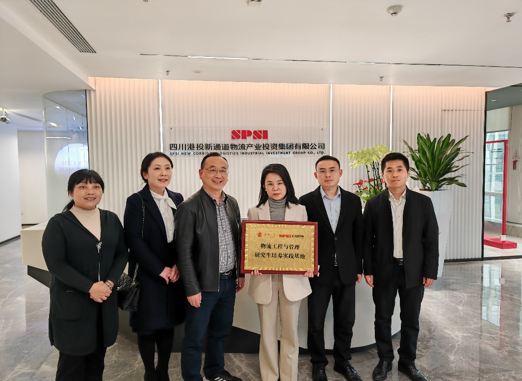 为进一步提升研究生培养质量,促进校企合作,3月27日下午,管理学院副院长牟绍波、管工系副系主任谢寒、段华薇教授以及教学与科研办易子君一行4人赴四川港投新通道物流产业投资集团有限公司,举行物流工程与管理研究生培养实践基地授牌仪式,并就产学研合作开展座谈交流。四川港投新通道物流产业投资集团有限公司党委委员、工会主席、港通云集有限公司董事长、总经理田静,公司办公室主任唐雄及相关职能部门负责人参会。