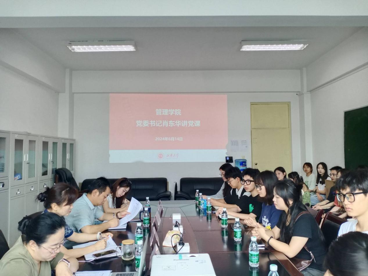 为落实党中央关于加强党纪学习教育的要求,加强对学生党员的教育管理,进一步提高学生党员的政治觉悟和纪律意识,2024年6月14日上午,管理学院党委书记肖东华在3E-405会议室,为2024届毕业生党员代表讲授党纪学习教育主题党课。