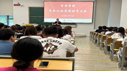 6月24日晚上,管理学院院长赵修文和工商管理系副系主任肖金岑赴宜宾校区召开2022级人力资源管理专业认知实习动员大会。赵修文引导学生明确了认知实习的目的和意义,对同学们提出了要认真总结实习收获,争取在实习中进步成长的期望,并再三强调了实习安全问题。