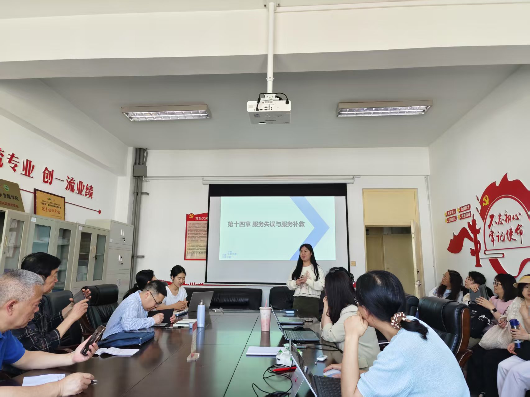 马景晨老师主讲《服务营销》课程中的服务失误与服务补救内容,通过引导案例解析服务失误归因与补救策略,课程设计逻辑清晰。点评环节刘丹萍老师建议“整个课程环节可以采用BOPPPS教学模式进行设计,以本堂课教学目标为导向,具体可由导入、学习目标、前测、参与式学习、后测和总结六个环节构成形成闭环”;陈玉玲老师肯定其“声音洪亮、课程结构严谨”;督导老师提出“增加思政元素与案例多样性”的改进方向。