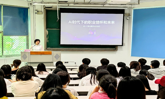 活动特邀优秀校友邓文莉担任主讲人。邓文莉,1994级管理学院会计学校友,现任中铁建地产成都铁诚房地产开发公司董事会秘书,总会计师,工会主席。邓文莉以热门AI工具DeepSeek为切入点,深入剖析AI发展历程,生动解读不同时代年轻人面临的挑战,犀利探讨“躺平”与“内卷”现象,并围绕发明工作的三大思维展开专业讲解。结合自身跌宕起伏的职场奋斗故事,她抽丝剥茧般为同学们分析行业发展动态,倾囊相授实用求职技巧。现场互动环节气氛热烈,同学们积极踊跃,纷纷就职业规划中的困惑向校友提问。邓文莉耐心细致解答,真诚分享自己的经验与见解,让同学们收获满满干货。