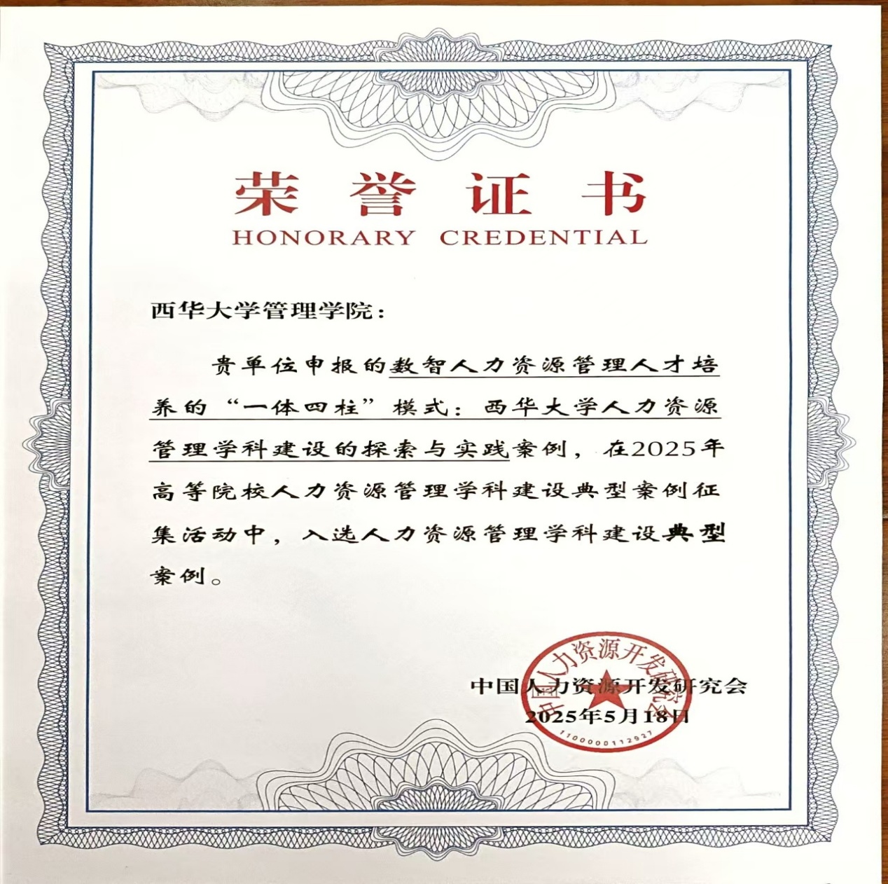 注:西华大学人力资源管理专业开设于1999年,距今已走过25年的历程。目前拥有专任教师15人,高级职称和博士占比达到93%。近年来主持了国家自然科学基金、教育部人文社科基金等高级别科研项目,发表CSSCI和SSCI收录论文50余篇;立项了多项省部级教改课题,在高阶课程(组织行为学)、校级课程思政示范课(人力资源管理、组织行为学)、新华网课程思政、课程知识图谱等方面取得突破;本科生深造成功率保持在20%左右,研究生在校期间发表多篇SSCI一区论文,今年更是有三位研究生成功申请到西安交通大学等高校的博士研究生。