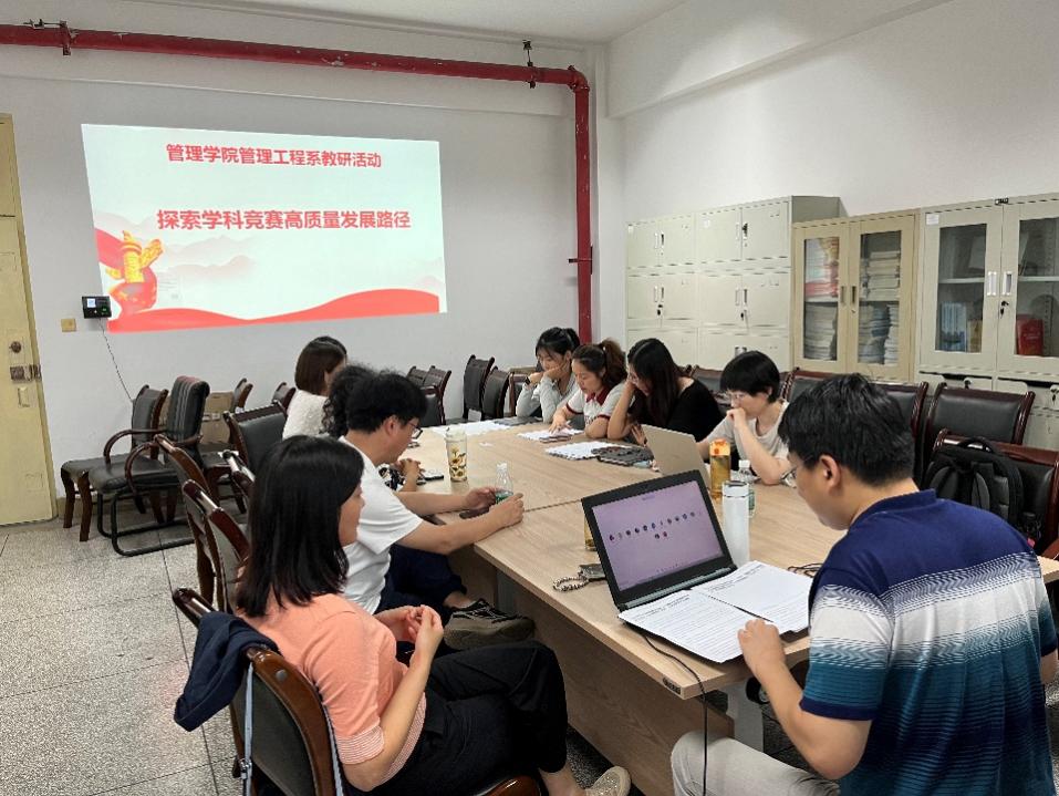 5月29日14点,388vip太阳集团管理工程系于郫都校区3E-402会议室召开专题教研活动,围绕“探索学科竞赛高质量发展路径”展开深入研讨。本次活动采用“郫都校区线下+宜宾校区线上”双会场联动模式,管理工程系全体教师、学科竞赛指导团队代表及部分学生代表参会,共同探讨如何通过“科研转化为教研,教研反哺科研”推动学科竞赛提质增效。