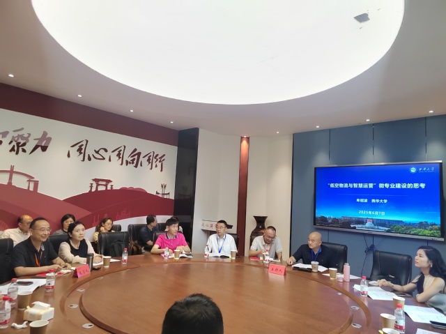 论坛上,管理学院牟绍波教授以“低空物流与智慧运营微专业建设的思考”为题作了分享交流,从低空经济发展现状、低空物流与智慧运营微专业建设情况、面临的问题、建设思路及主要举措等四个方面进行了汇报。牟绍波教授的报告得到了与会专家的广泛认可,并与专家进行了深入的交流。