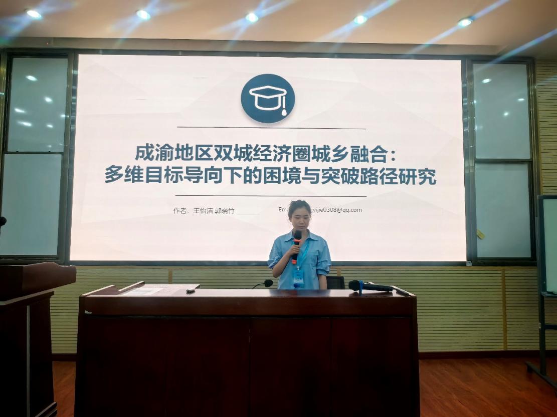 当天下午开展了4场分论坛共计23场分论坛报告。在“城乡融合与乡村振兴”论坛分会场,我院2024级会计硕士研究生王怡洁与指导教师郭晓竹就其撰写的论文《成渝地区双城经济圈城乡融合:多维目标导向下的困境与突破路径研究》进行汇报交流,并获与会专家的好评。
