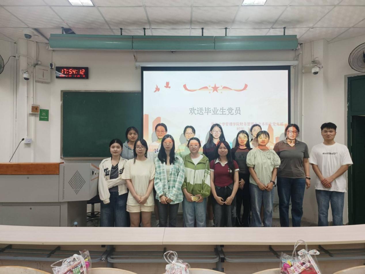 最后,党支部合影留恋在热烈的掌声和祝福声中,财务管理本科生党支部毕业生党员欢送会圆满结束。此次欢送会不仅是对毕业生党员在校期间表现的肯定,更是对他们未来发展的激励与期许。相信毕业生党员们将带着支部的祝福与期望,在新的征程中砥砺前行,传承红色基因,续写奋斗篇章,为实现中华民族伟大复兴的中国梦贡献自己的力量!
