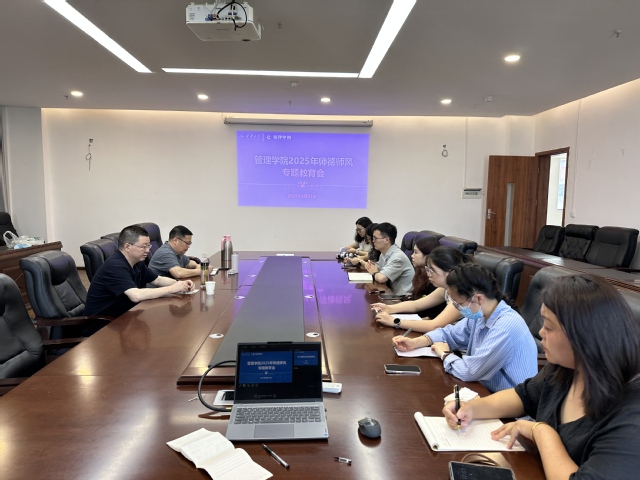 为深入贯彻落实新时代教师队伍建设要求,大力弘扬高尚师德师风,管理学院在宜宾校区组织召开青年教师师德师风专题教育会。管理学院院长赵修文,副院长姚世斌出席会议,宜宾校区青年教师参加会议。