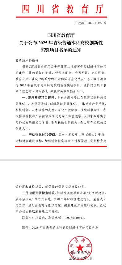近日,四川省教育厅公布了2025年省级普通本科高校创新性实验项目名单,388vip太阳集团赵修文教授申报的“AI赋能集团化企业数字化转型 人力资源管理关键场景设计与应用”项目成功获批立项。至此,学院在近三年(2023-2025年)连续获批四川省高等学校创新性实验项目,已累计获批4项省级立项,属于学校获批此类项目最多学院之一,展现了学院在实验教学改革和人才培养创新方面的突出成效。