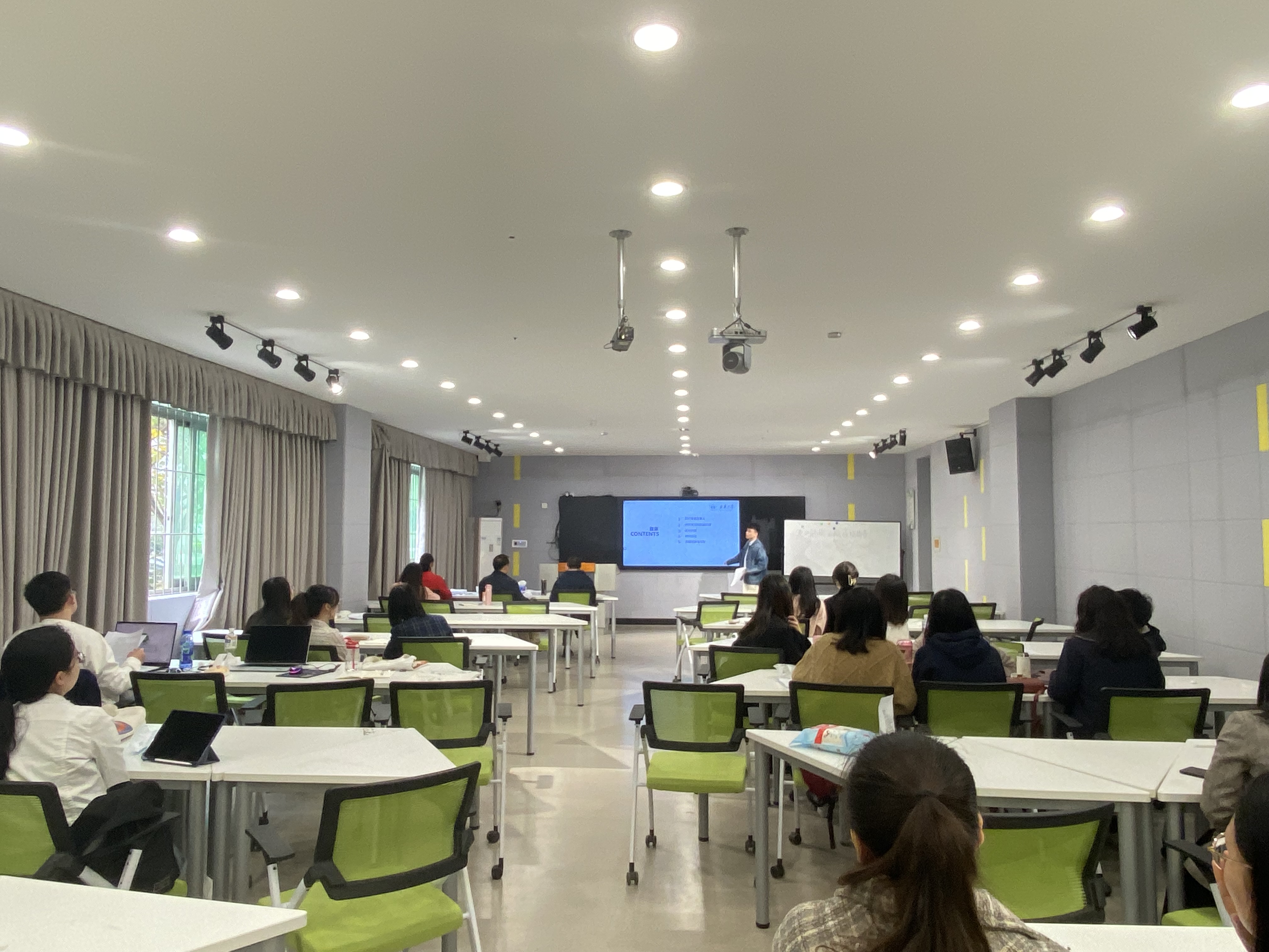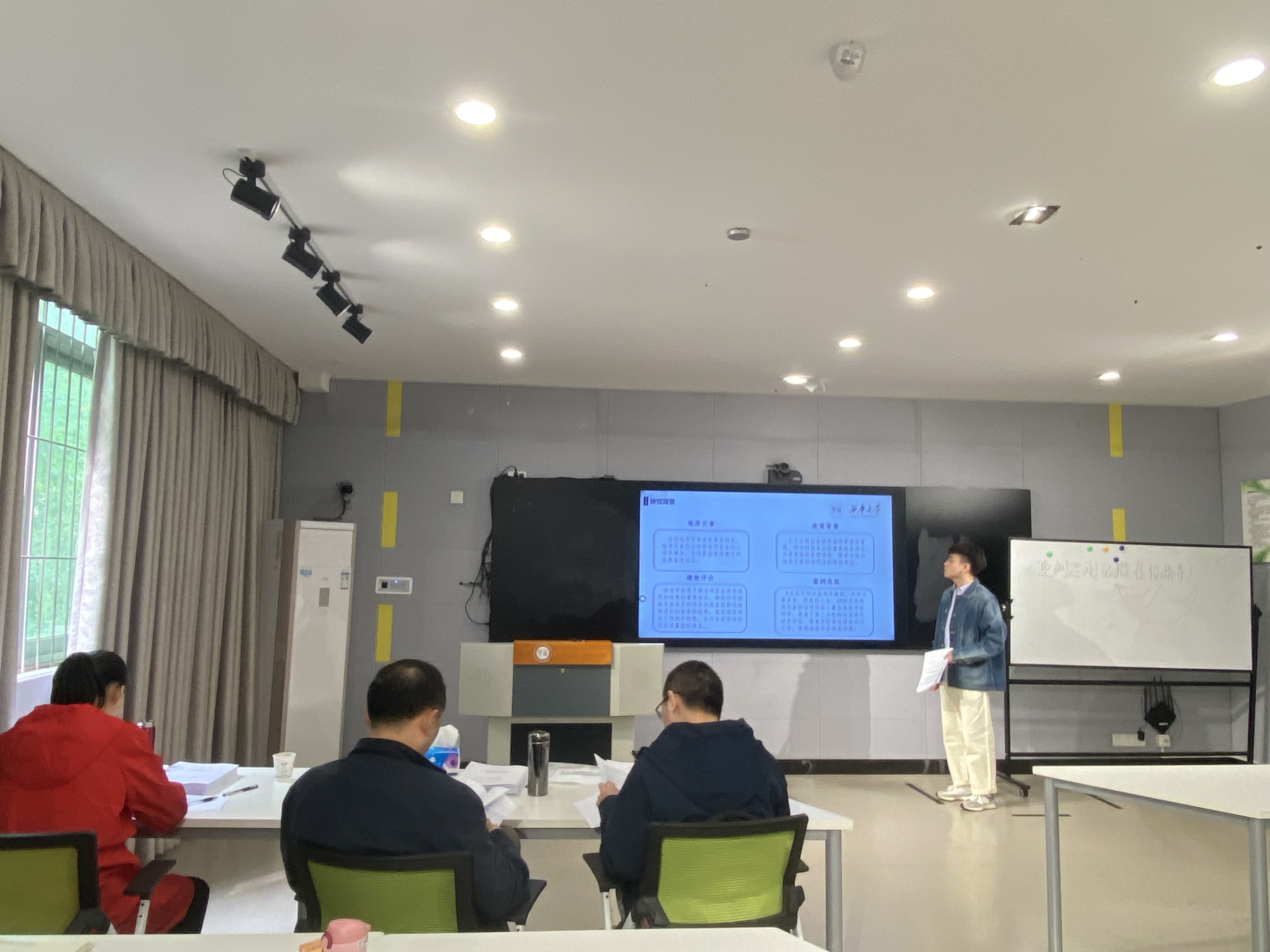 41名学生划分为3组,分别在3E402、3E211、3E105进行预答辩。答辩指导教师来自西南财经大学、四川师范大学、行业导师,共计9人。