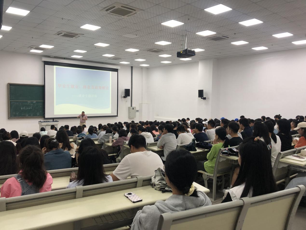 随后,任浩老师为同学们提出了两点重要建议:一是要做好求职资料的准备和求职时的心理准备,稳定好自己的择业心态,提高自我认知;二是要瞄准就业黄金期,充分把握校园招聘的机会。
