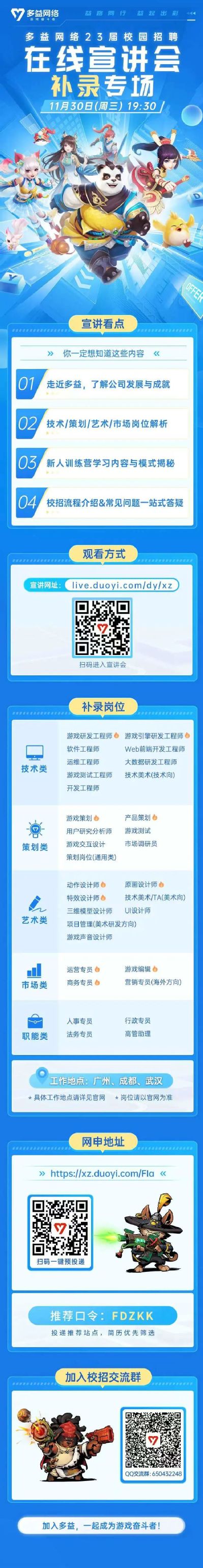 多益网络11月30日晚19:30开展线上宣讲会!!!请各位同学积极参加!!!