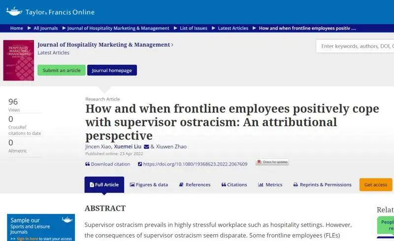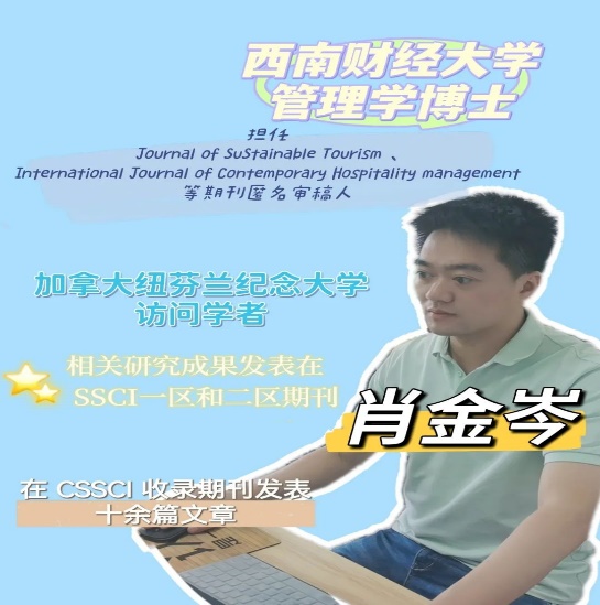 肖老师2015年毕业于西华大学,于2020年获得西南财经大学管理学博士学位,期间在加拿大纽芬兰纪念大学从事访问学习。主要从事人力资源管理和组织行为学领域研究,担任Journal of Sustainable Tourism, International Journal of Contemporary Hospitality Management等期刊匿名审稿人。