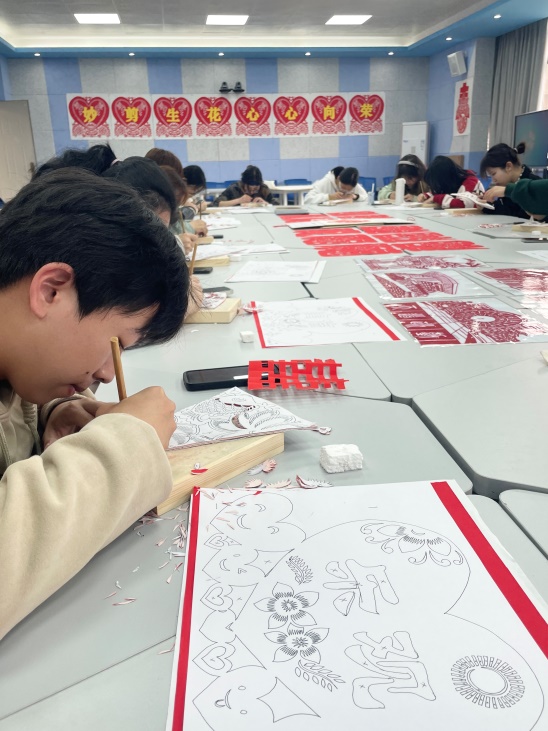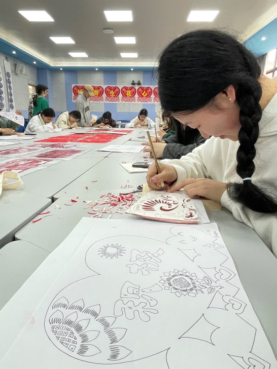 同学们全神贯注投入剪纸活动,在轻柔的音乐中淡化了对时间以及对周围环境的感知,全情投入于本次活动的过程之中,有了一次身体与心灵双放松的心流体验。同时,本次剪纸活动让大学生在创造美、鉴别美、欣赏美的同时增强自信心与自尊心,体验美好生活的正性情感。进一步激发了大学生对于传统文化的热爱,增强了他们的社交能力、创新思维、艺术审美和心理健康水平。