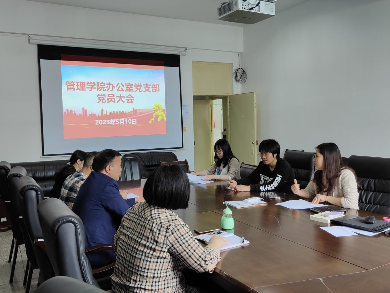 5月10日下午,管理学院办公室党支部在3E-401会议室召开党员大会,讨论接收预备党员。支部党员同志参加了会议(因部分党员同志在宜宾校区开展工作线上参会),会议由支部书记饶芳同志主持。
